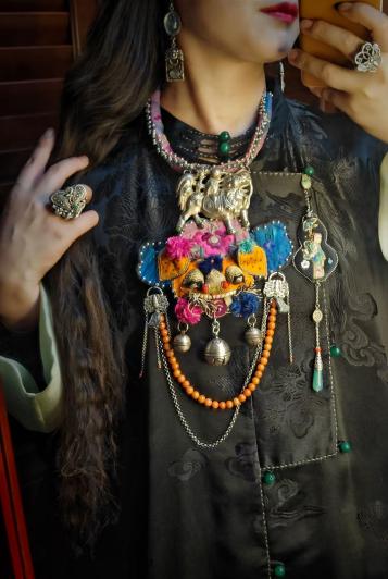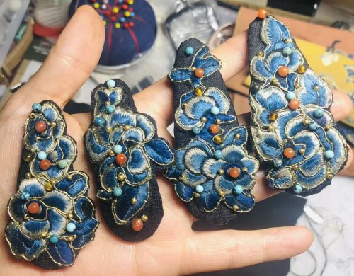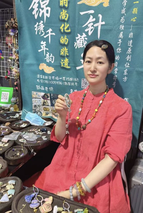 她的创新作品涵盖了饰品、装饰画、服装等多个品类。在饰品设计中,她将小巧的老绣片与银饰、珍珠等材质结合,打造出发夹、项链、手链、戒指等精致饰品。一款镶嵌着民国绣片的发夹,以淡雅的兰花纹样为主体,搭配复古的金属配件,一经推出就受到年轻消费者的喜爱;她设计的老绣包包,则采用较大的老绣片作为包身主体,搭配简约的皮质配件,既保留了老绣的韵味,又兼顾了实用性。